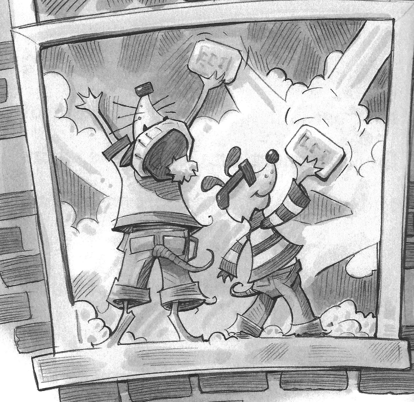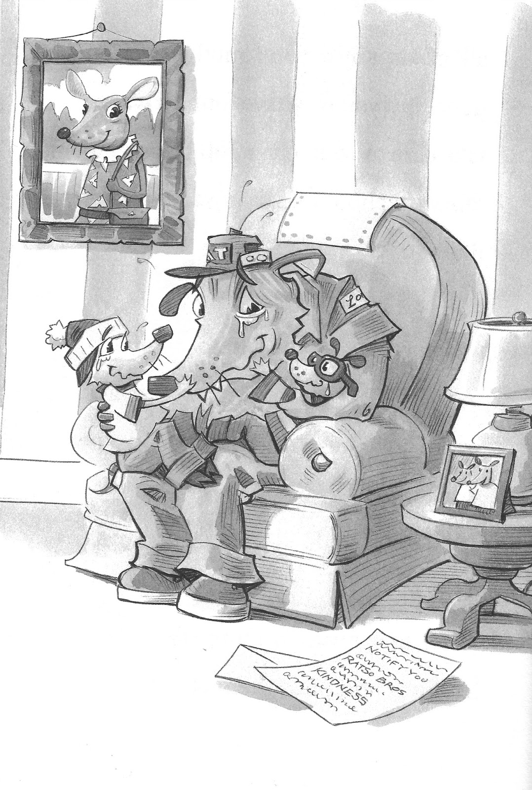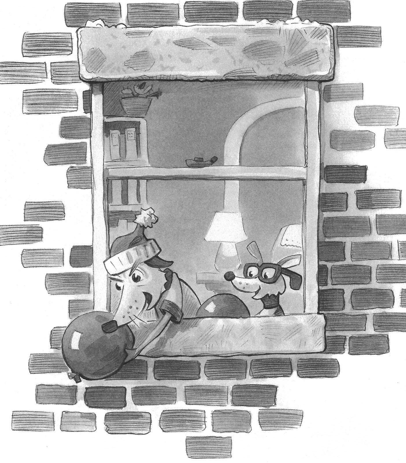 Illustration copyright 2016 by Matt Myers.MP: If you have a pocket, what is in it right now?L. Some notes I made for a new plan. It’s sure to be the best one yet!R. A few balloons (for making water balloons), a bar of soap (which we recently used tosoap — and then wash — a neighbor’s windows), and half of a cheese sandwich fromyesterday’s lunch.L. You really should empty your pockets more often, little brother.R. Right-o!I'd better end this interview before Ralphie takes aim with another water balloon — many thanks to the Ratso Brothers for coming all the way from the Big City to chat with us!
