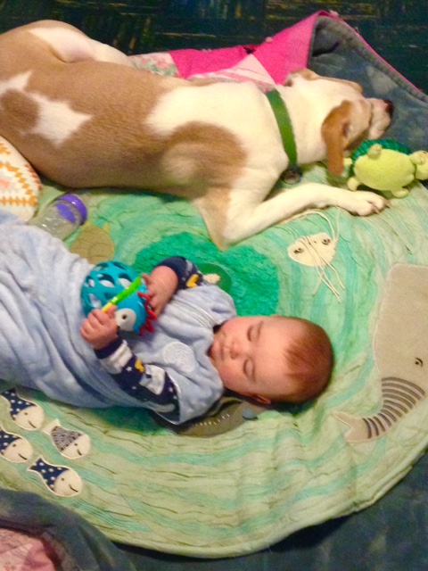 I usually have at least one buddy with me when I'm working. This is my son Jackson, he's 7 months old.
