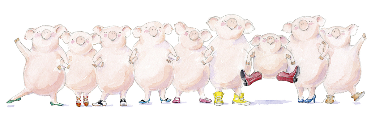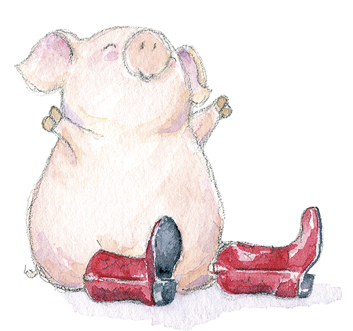 He wants to stop doing the usual pig things like oinking and sleeping. He’d much rather stand, climb, and dance! And Peddles finally gets his chance when he bumps into a pile of shoes and finds a pair of red boots that fits just right!