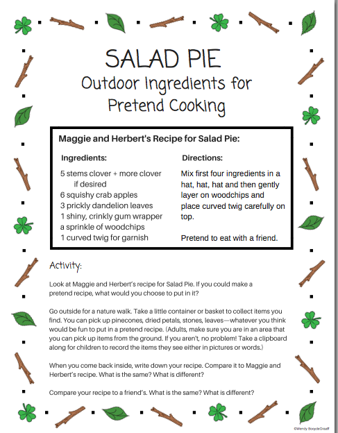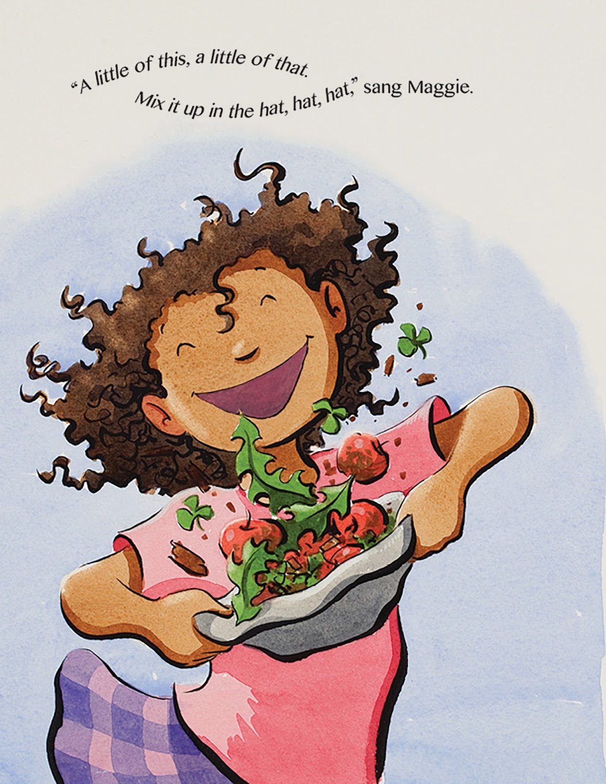 Salad Pie was inspired by my oldest daughter, playing at the park. That’s where she said those words, “salad” and “pie” together, and I thought they sounded so unique and creative that I repeated them over and over on our walk home so I wouldn’t forget.