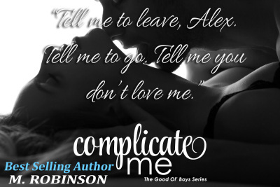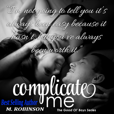 We see Alex, Lucas, and the boys grow up from children to adults. We see them grow apart and find their way back to each other. You feel what they feel and you just want to take them all aside and tell them to live life for themselves and not to worry about what anyone else thinks or feels. I could easily see this book and this series playing on the big screen as part of a series starting from the beginning. Although it’s a very different genre from what we’re used to seeing from M, it’s still very much her signature style. Complicate Me did just that. It was messy, complicated, and at times painful to bear but in the end I believe they came out stronger and the bond they share held up through the test of time.