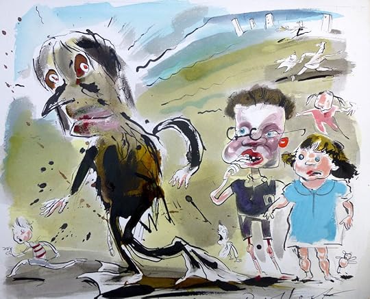 This is Steve in earlier years, before he began to go bald. I love the fact that Ian has given him several sets of eyes and that his son is looking at him askance, as if slightly embarrassed about his flamboyantly dressed hippie Dad: which I think was probably very close to the truth, though I make no mention of it in the story.