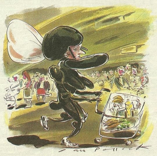 I did describe the event in the text, but Ian has managed to capture the essence of it to perfection, with the image of Mark, dressed like an “insectizoid alien”, pushing a shopping trolley in some insane ritual of self-humiliation.