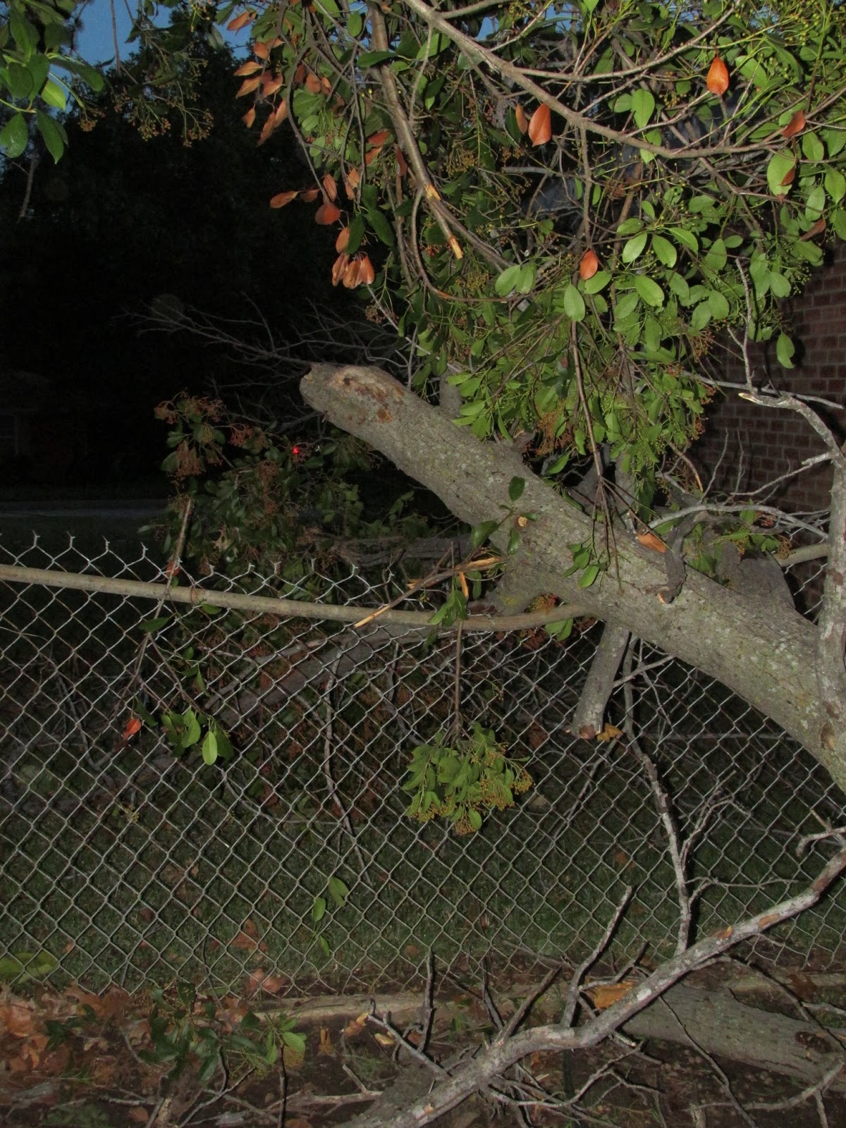 Damage was only to the fence and relatively easy to fix but we gotta cut up the huge length of tree. I think we'll be hiring out!