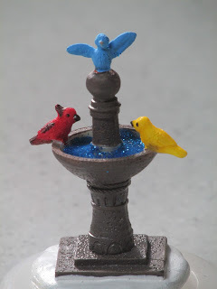 So fast forward an hour-ish and I'm sorting through my purchases. I open the globe and read the instructions. I also needed glycerin and a box of some sort of water-proofing solution. Okay. No problem. I'll go back another time. In the meantime, I open the figurine package only to find one of the birdies' little wings has broken off. It was disappointing, but then I remembered I have some Sculpey clay and I created a new little wing for the thing.