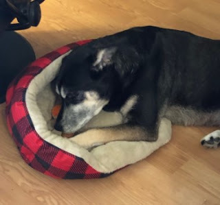 Rayna sleeping in the little dog's bed one day, while DD and I were watching TV in the living room.Rest assured, I'm always on the watch for her mental and physical well-being. I don't want to put her down prematurely, but I don't want her to suffer unnecessarily either. So we're being vigilant to her indications of "okay-ness" vs pain / miserableness. I don't believe she's quite there yet, but it may be looming. If you're a pet owner who's faced this kind of thing, you know what I'm talking about. The animal will tell you when it's time to go.