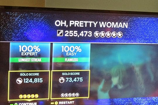 (One of my recent 100% scores. I'm the 100% on the right--the EASY difficulty!Sonshine got 100% playing EXPERT on the guitar.)Another thing I like to think helps me is Rock Band. I primarily play to spend time with my kids. They generously invite to play with them and those opportunities will be non-existent in just a few short months. But...I've thought often that there's no reason I can't keep playing on my own. The exercise of beating the correct drum pad or multiple pads in synch as directed by the game seems like another good way to keep my brain (as well as my body) working. If you play at a harder difficulty which generally increases the speed at which you play, it could be considered a mini-workout too. :) At least for the drum players.