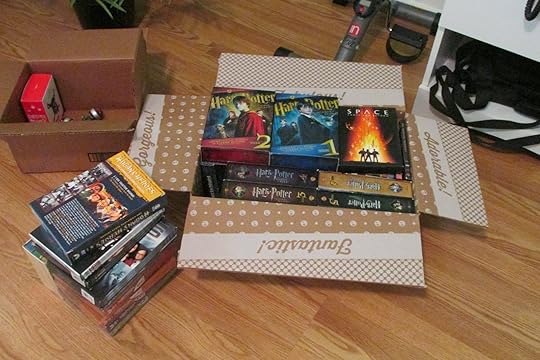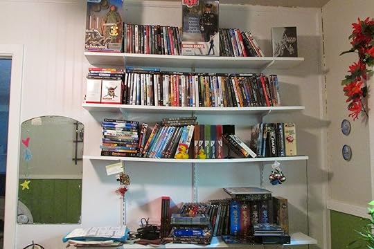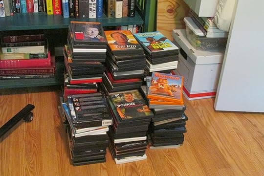 All our family movies were in my room on my bookshelves. Well, I don't watch hardly any of them. Sonshine has his favorites of course, as does DD, so I sorted through and reclaimed my shelves which have bowed with the weight of all those movies.