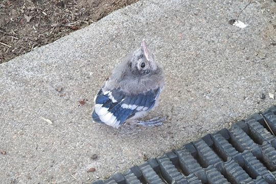 B) On Friday evening, Sonshine and I found a baby blue jay on our back porch. It was sheer dumb luck that the dog raced out the door and right over the little thing. Otherwise we could have had a tragedy on our hands.
