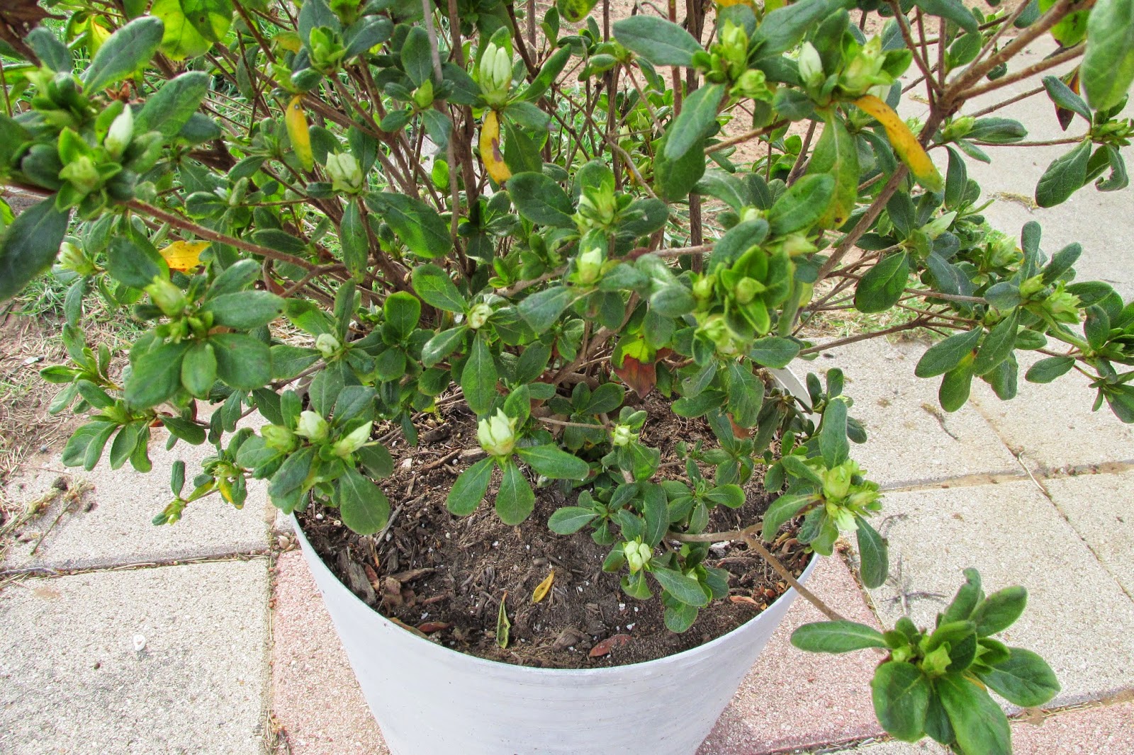 April 11thAccording to a friend of mine, azaleas are hard to grow. My other one died and since the pair of them had been planted to flank my Chinese wisteria and I no longer had two...I moved this one to the pot and the corner of my patio. I seems to like it there, so I'm not messing with it.