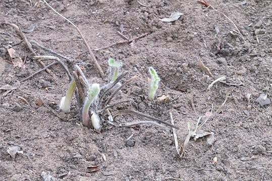 The Gerber Daisies.The Gerbers are nothing more than tender green shoots at this point, but I was very excited to see them.
