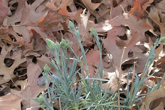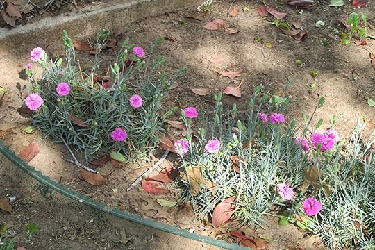 The initial burst of azalea blooms are wilting and falling off, but the Sweet Williams are now starting to open up.