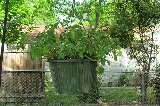 At the March meeting of my writers group, I was presented a hanging planter for my work on the contest I coordinated (and am still coordinating). I joked that it was something else I could kill, but here we are a month later and the little guy is hanging in there--literally and figuratively--and finally looks as if I'm going to get some blooms.