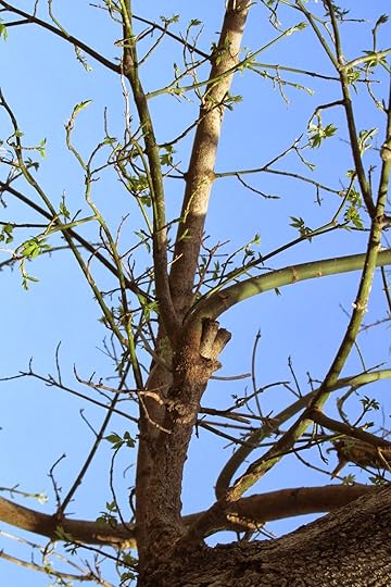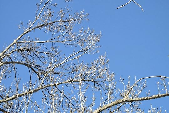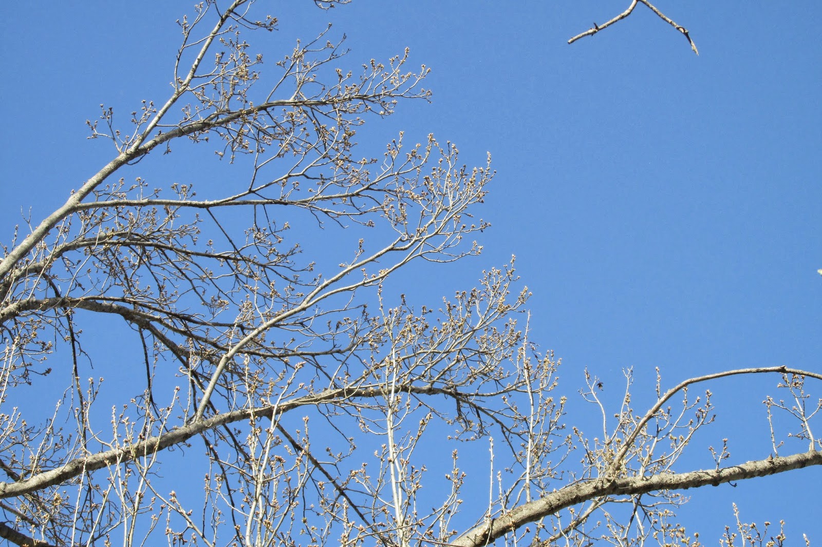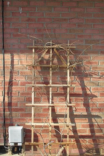 This is the Chinese wisteria-- It looks completely dead, I know, but I'm pretty sure the main stem is still alive. I hope it's still alive. I'll have to inspect the neighbor's bush and see if she has anything on hers yet. Though I'll probably have to prune some of the for-sure dead vines.