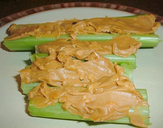 The celery and peanut butter is working out great so far. I haven't gained poundage back that could be linked to the higher calorie snack (just the other bad choices). I even started making a second set for DH to have. Now if only I could get him to eat at regular intervals.