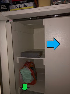 I inadvertently started with the hall closet a couple of weeks ago. One of the hall closets surrounds our master bedroom shower stall on two sides. The result being--we have a closet with a very deep left side that I can't quite reach the back of. Like one of those under-bed storage containers will fit length-wise!