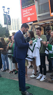 As mentioned, for the first time ever, we were able to attend the opening day Victory Green Carpet Walk. After a lunch out (thanks to a gift card and no out of pocket $$ spent), we lined up along said green carpet and waited. And waited. And waited. Things didn't get started until about twenty minutes after they should have.