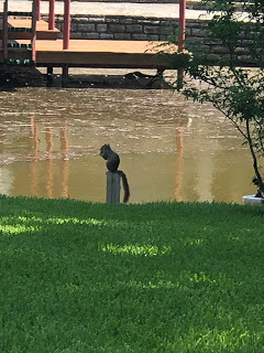 Taken from a seating area just off the back porch... There's a small dock just below where that squirrel is.