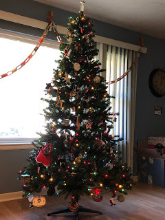 DH helped me put it together and fluff out the branches. DD help me sort ornaments and update my list of ornaments that I've bought or made for the kids and DH (and myself) over the years.