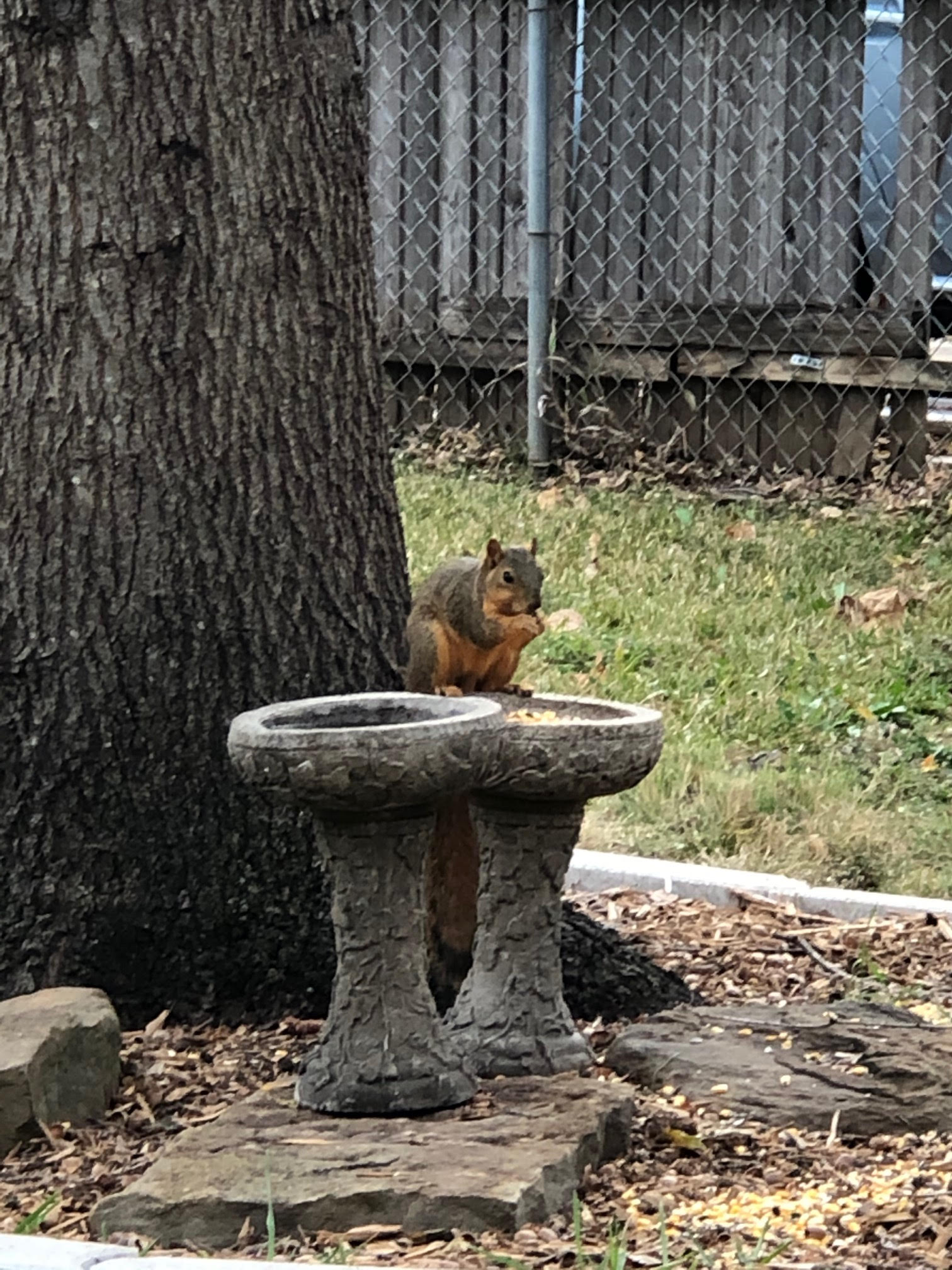 These guys ventured forth while I was sitting outside on Saturday afternoon. I don't know if these are all the same squirrel or what. There were actually three of them nibbling and squabbling.