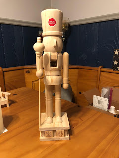 I shared my little tiny nutcracker back in August here. I had planned for this to be Stars colors, but as I type, the idea of a red, white, and blue theme appeals too. I guess we'll see what happens when I sit down to paint him.
