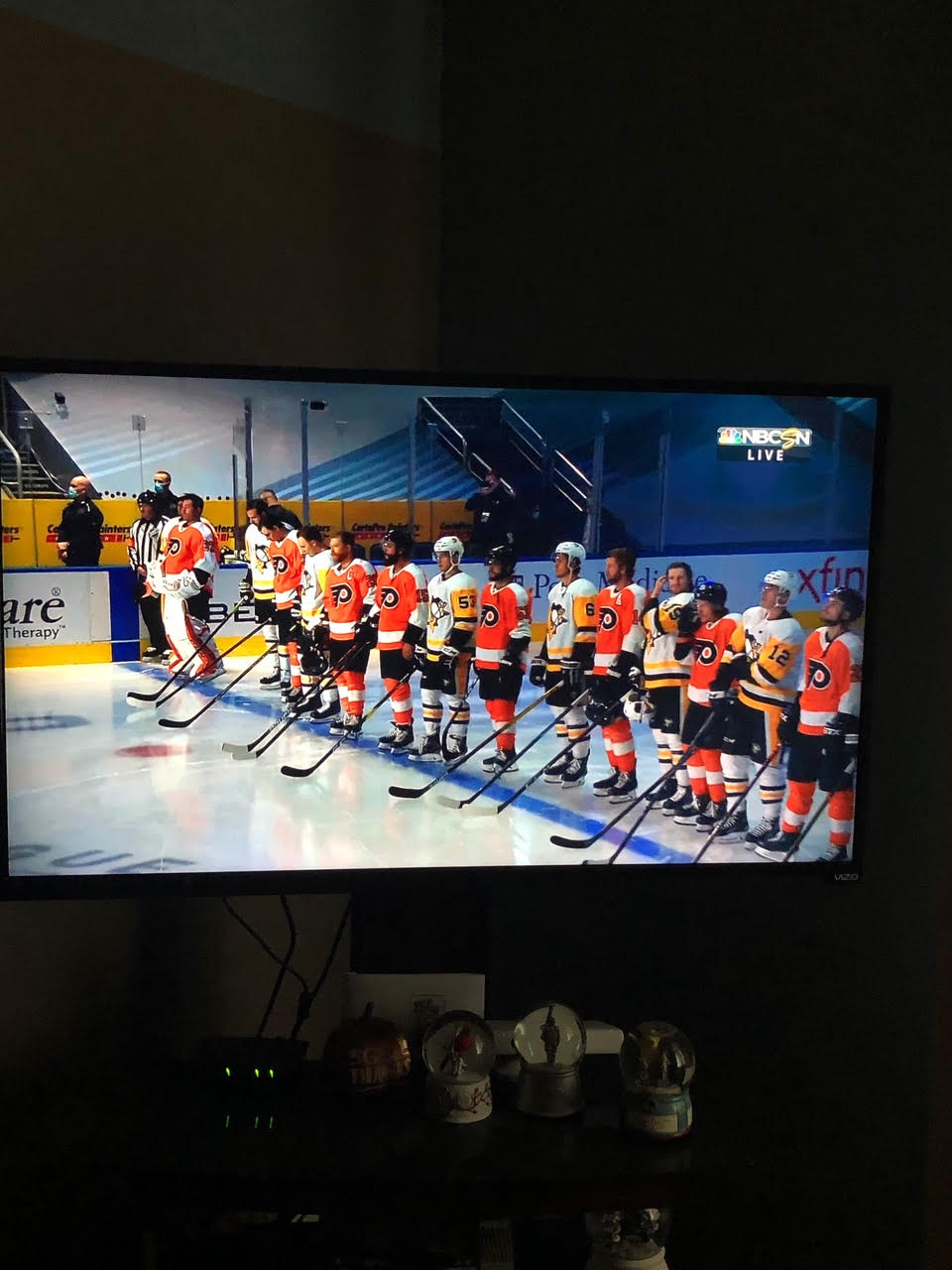 Despite their teams (Penguins and Flyers) having one of the biggest rivalries in hockey, the players mixed it up during the playing of the national anthem in the spirit of unity and solidarity and to stand against social injustices, racism, and hate.