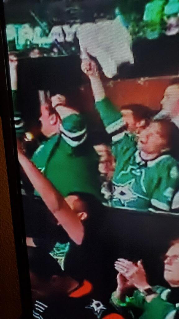 Me on the right, my DD on the left. This is a still from a commercial for Fox Sports Southwest or the Fox Sports Go app. The footage was taken at one of the many watch parties DD and I attended during the spring of 2019.
