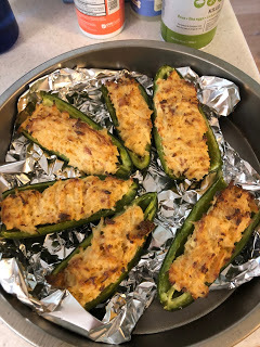 I'd made this Buffalo-flavored cream cheese chicken thing Saturday instead of the BBQ chicken the rest of family ate and it lacked a little something, which I'll have to pick a friends brain about later. It wasn't bad, just a little bland on its own, so I bought jalapenos to stuff and that was also very tasty.