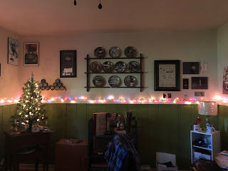 I put my red, white, and blue fairy lights up this past weekend and enjoyed having them on whenever I was in my office. And I have enough of them that they cover three of four walls even having to go up and over the window. There is no chair rail on the fourth wall so no need / desire for lights on that one...