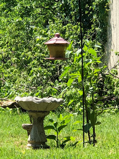 Ah, that my backyard still looked so neat and tidy.I had to give up feeding the birds at some point, but the bird bath is still there.The bed itself is all overgrown however.Have a great weekend and stay safe.