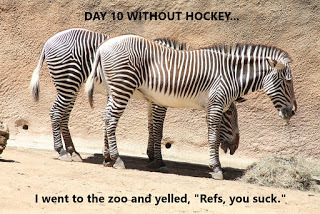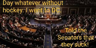 As for the weight loss, I did get up and exercise every day but one, because I was up late (re-)watching a hockey game. I do build in those off days for the mornings after hockey game attendance or hockey game watching from home, so it wasn't as if I was cheating. In fact, I lost all those built-in off-days because hockey's been canceled.