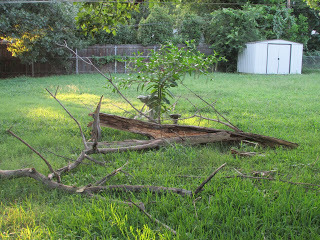 The storm that blew through early Tuesday (and I mean early--like 1AM) brought down the large dead branch in the other tree...
