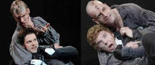 BC's monster on the left, JLM's monster on the right.Anyway, I'd been wanting to see the performance, but the National Theater in England said they had no intention of issuing the performance to DVD. I was definitely disappointed by that news. BUT THEN, I got an email saying that there was going to be an encore theater showing (the fourth one actually) of the play and I didn't hesitate to buy a ticket right then and there.