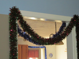 Bought some new garland--I love garland and my old garland was getting pretty threadbare. Green and red for the living room and blue in the kitchen.
