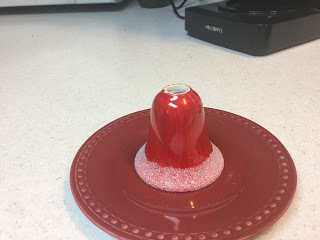 I'm still waiting for some sort of epiphany on the red and green bells. They still look like this. I wanted to have more glitter sort of down the top with a jagged-y edge, but my attempt turned out awful, and I had to clean off the glue and glitter, which also removed the color. So I had to re-color it and we're back to square one. I may just have to go with a more curvy edge.