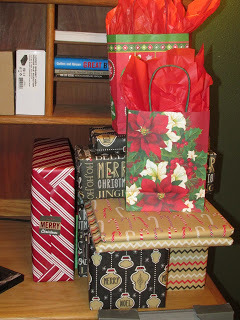 Not this past Monday, but the previous Monday, I did my Christmas shopping. Sat down in my desk chair and keyed my ideas into Amazon.com's search bar. And now I'm reaping the benefits. Every day when I've gotten home there's usually been a package waiting for me, and even though none of the gifts are for me, it's still exciting to see what's arrived and for whom. It's added a festive feeling to coming home. Not only is the dog excited to see me--but there are packages!