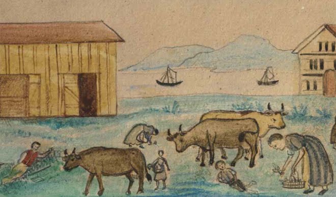 Menschen essen Gras zusammen mit ihrem Vieh. Darstellung aus dem Jahr 1816Mich hat erst jemand in einer Facebookgruppe für Amateurhistoriker darauf aufmerksam gemacht, dass heuer das "Jahr ohne Sommer" 1816 genau 200 Jahre her ist. Hier ist ein Auszug aus der "Kurzen Beschreibung derer wichtigen Begebenheiten und Kriegs Umständen" von J. P. Benack, der die Auswirkungen auf das Herzogtum Nassau erlebte und schilderte: