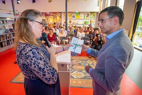 Zaterdagmiddag 15 juni was het zover in de bibliotheek van Huizen. Onder grote belangstelling werd het eerste exemplaar van de verhalenbundel ‘Leven in twee werelden en andere verrassende verhalen’ overhandigd aan wethouder Maarten Hoelscher.