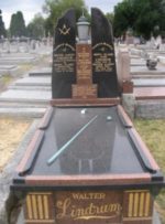 Walter Lindrum’s headstoneThe 1960 grave of world champion billiard’s player, Walter Lindrum, is much less gruesome – a few stone billiard balls and a cue lie across the polished marble, as though Walter has just stepped away for a moment and will be back to finish his shot shortly.