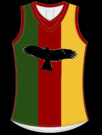 The colours for the Hobart Kites – green, yellow and maroon – are the state colours of Tasmania, so it made sense for the Kites jerseys to be in those hues. I’ve attempted to make a mock-up of the jersey (using a template) but please excuse my terrible Paint skills.