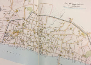 I used his map of London in 1270 (above) to chart William and Thomas’s progress through the old walls, across the frozen city to old London Bridge on the Thames. Some of the places on his map still exist today – St Paul’s and churches, mainly.