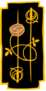 The novella cover will be developed over the next month or so and then the trilogy later in the year. I also commissioned some pieces up front so I could show our backers the visual style that we were aiming for – hence the lovely flapper with sword banner on the main Kickstarter page, and the iconic Art Deco pin design which Kathleen produced.