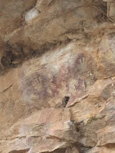Ochre hands We continued southward, like we were unzippering the nation. We skirted Alice Springs proper to visit the Desert Park (other groups with more agility and better knees took on long walks) where we met a roly poly hand-raised echidna who at least had a friendlier expression when defeinding itself with spikes.