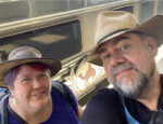 Narrelle and Tim at the end of the trip!That night, we stopped in the outback to view the stars. The flaming bonfire made that kinda difficult at first, but a few steps away you could stand in the red dirt and look up to see the smear of white as we looked into the distant spiral arm of our galaxy, the spilled milk of the Milky way which I never saw as a child. The first time I saw it – in Sassafras, walking with Tim – I was dumbfounded. I had no idea it could be seen with the naked eye!