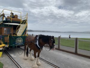 The horse-drawn tram at Victor HarborNow we’re in Adelaide, a nice little town. We popped along to Victor Harbor (it’s spelled without the ‘u’ for arcane reasons) and rode in both a heritage train and a horse-drawn tram.