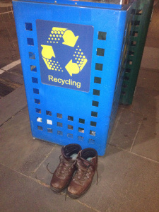 Take this pair of boots, found placed neatly by the bin next to the bookshop at the corner of Elizabeth and Bourke Streets one Saturday morning.