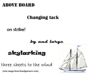 Some etymology of words and phrases is steeped in mystery. I wrote about the phrase toe the line a while back to, and recently found that some people claim the phrase’s origins, like changing tack, reside in the language of seafarers. My investigations into nautical-inspired English suggest the term comes from sailors having to line up with a seam in the deck planks. Some sailors were made to stand at the line at attention as punishment, hence the meaning of toe the line meaning to accept authority and obey the rules. Having said that, I’m not yet certain that anyone has been able to definitively lay claim on the phrase.
