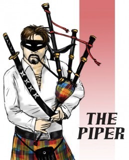 For anyone who was curious about the song The Ninja Piper which Jess and I sang for my brother/her father Richard, this is it. It was inspired by the fact that Richard plays the bagpipes and also has a blackbelt in karate and by the picture _audrey drew for me to give to him for his birthday the previous year.