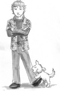 It's a picture of Gary looking all long-suffering while he is being mauled by Lissa's dog, Oscar. It's a scene from the new book. I begged Audz to draw it for me and because she's made of wondeful she did.