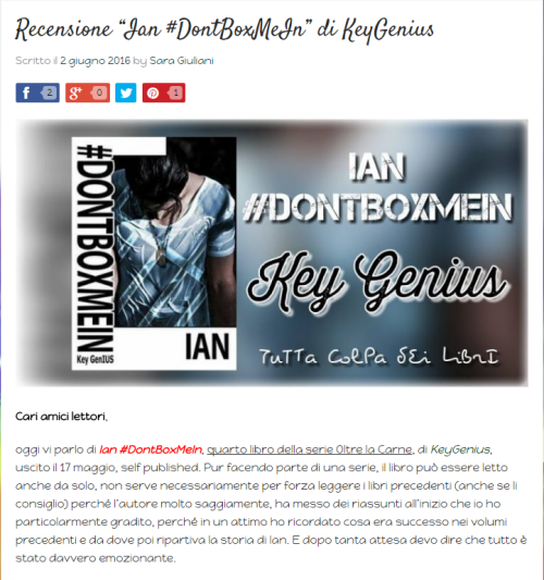Leggete la magnifica #recensione del #blog #tuttacolpadeilibri su #Ian #DontBoxMeIn